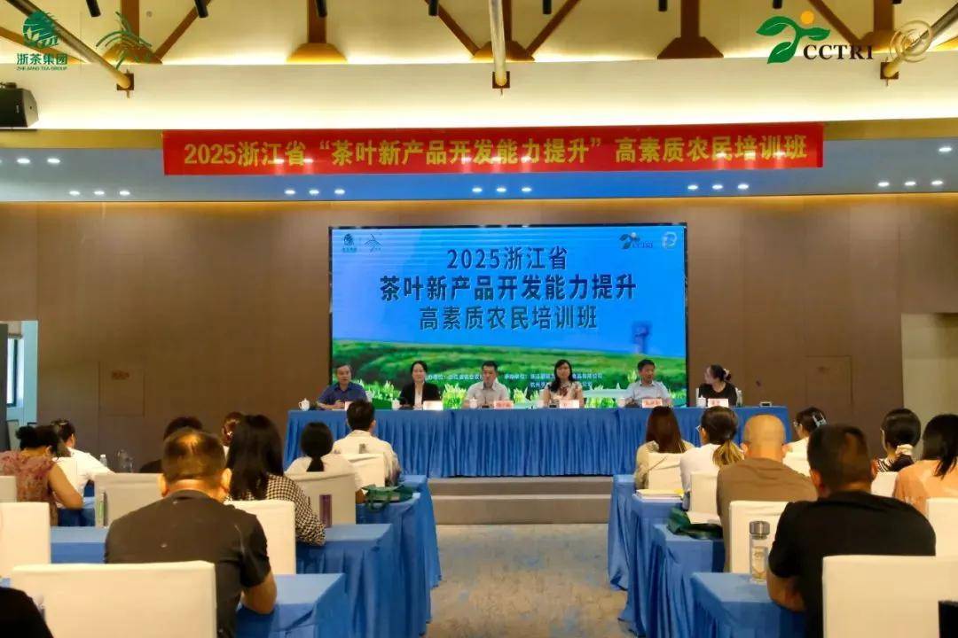 为贯彻落实《浙江省人民政府办公厅关于加快推进茶产业高质量发展的实施意见》(浙政办发〔2025〕19号)文件精神,切实做好2025年度省级高素质农民培训工作,助力乡村产业振兴、人才振兴。8月16日下午,由浙江省农业农村厅主办、浙江骆驼九宇有机食品有限公司与杭州亨达茶业技术开发公司共同承办的2025浙江省“茶叶新产品开发能力提升”高素质农民培训班(第一期)在杭州市余杭区正式开班,浙江省乡村振兴促进中心乡村人才与培训科科长林钗,浙江省农业农村厅技术推广中心茶叶科科长俞燎远研究员,余杭区农业农村局副局长何峰,中华全国供销合作总社杭州茶叶研究所党委副书记、纪委书记陆小磊,我司研发总监董俊杰等出席开班仪式,来自浙江省内各地市的50余名学员参加此次培训。开班仪式由中华全国供销合作总社杭州茶叶研究所茶叶科技创新中心副主任王盈峰主持。